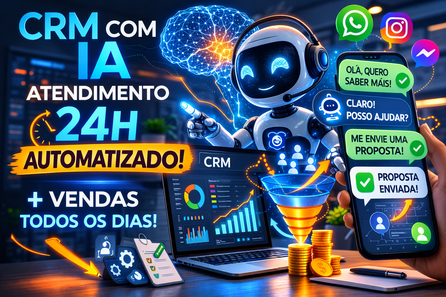 CRM com IA: Como Automatizar Seu Atendimento e Vender 24 Horas por Dia Se sua empresa demora para responder, você já está perdendo dinheiro Vivemos